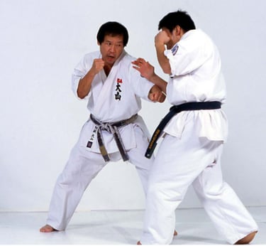 So, if you train in a style where you supposedly learn all the techniques by only standing in one spot and punching and kicking the air, do not believe that you are learning Karate as students did in ancient times. World Oyama Karate has brought the true ancient way of learning Karate to modern training. In our teaching style, we connect basic training , KATA training and KUMITE training. It is important for the Karate student to understand the purpose of each type of training and the relationship between the three.