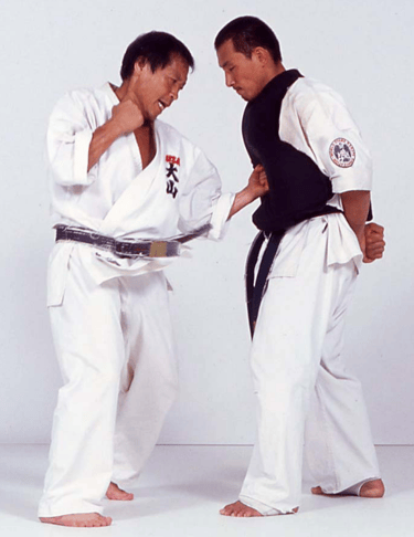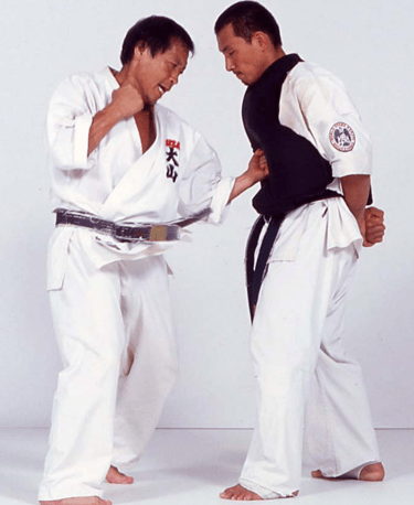 Also, in the World Oyama style, we always teach each technique with contact. Without contact, you will never really learn that technique . Without contact, you only learn the technique in your head. You can only imagine using the technique, and it doesn’t really fit you. It is very important that you train until contact with every technique. Then you can feel it – mentally and physically. This doesn’t mean that you have to kill your partner. You just have to make the contact enough to feel the impact.